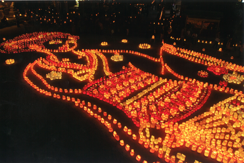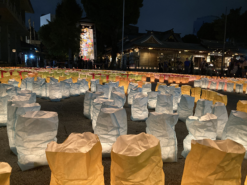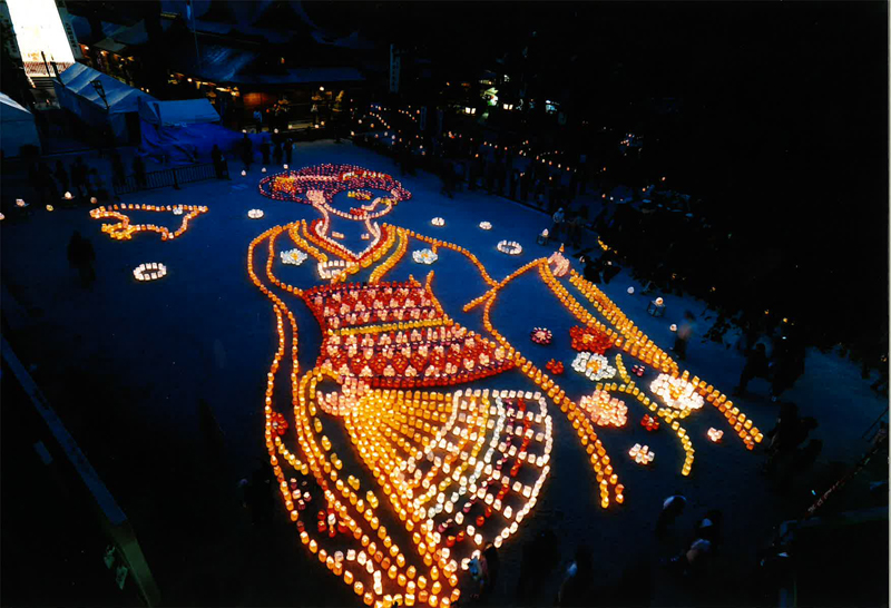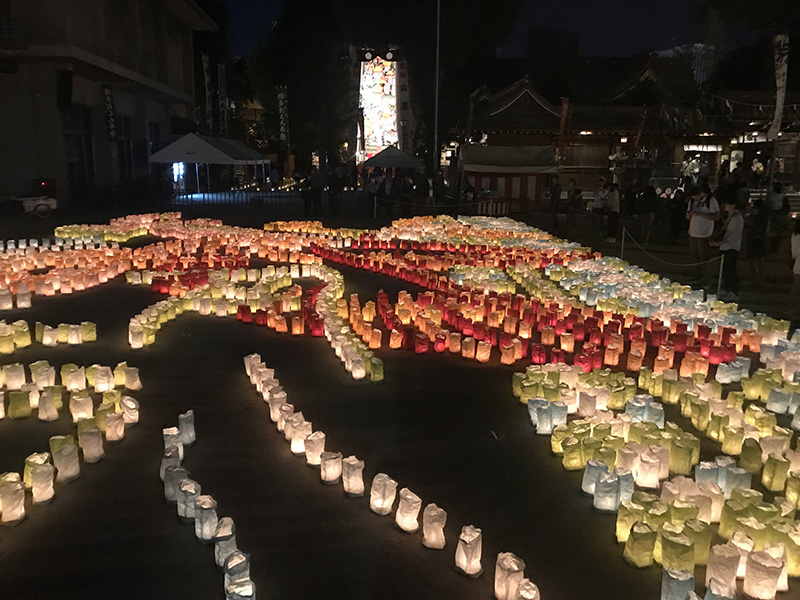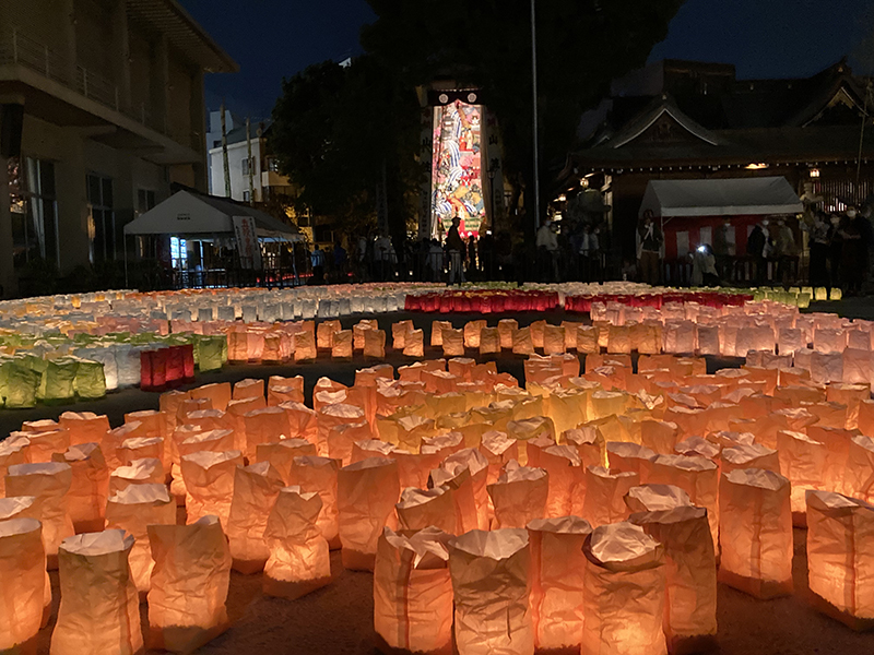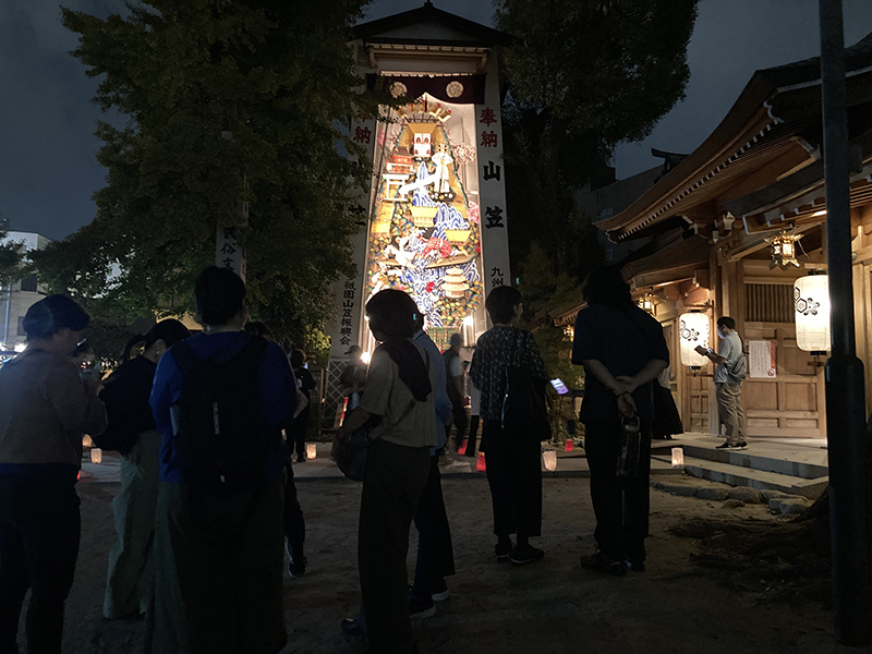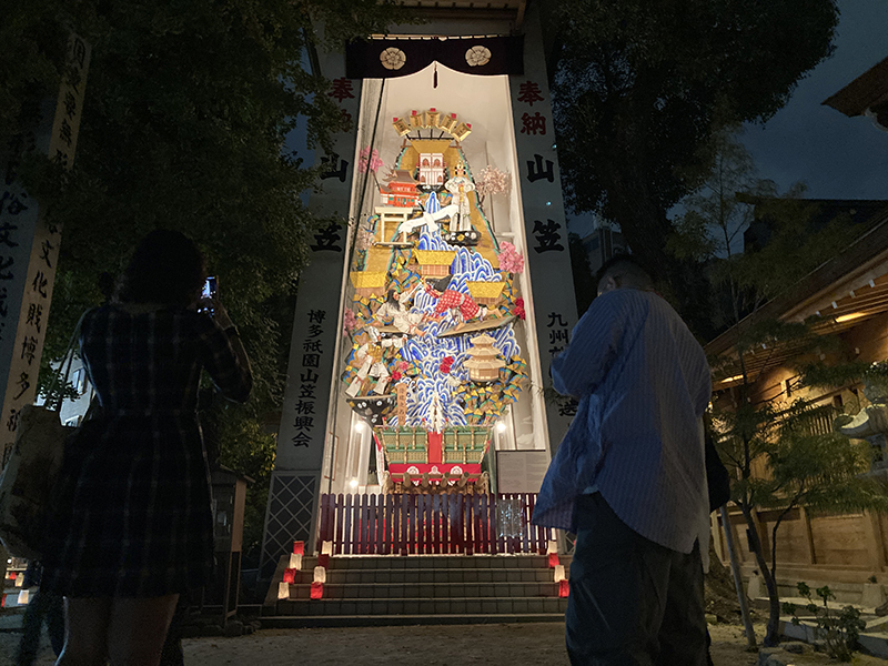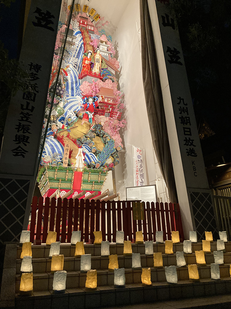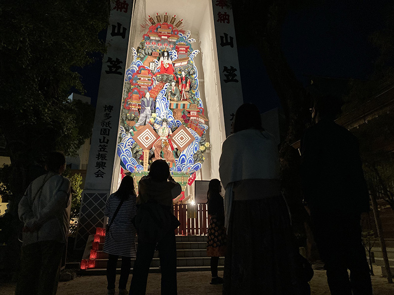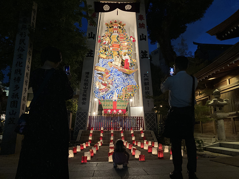 中殿に大幡主命(おおはたぬしのみこと)、左殿に天照皇大神(あまてらすおおみかみ)、右殿に素戔嗚尊(すさのおのみこと)が祀られており、博多の夏の祇園祭「博多祇園山笠」は、櫛田神社右殿の素盞嗚大神に対する奉納の行事として行なわれているものです。