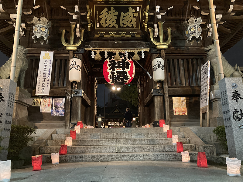 博多の氏神・総鎮守である櫛田神社は、商売繁盛、不老長寿の守り神として信仰をあつめており、地元の人から「お櫛田さん」と称され親しまれています。